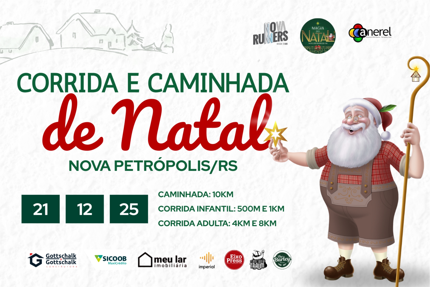 Nova Petrópolis será palco, no próximo domingo, 21 de dezembro, da Corrida e Caminhada da Magia do Natal, evento que reforça o turismo esportivo como vetor de desenvolvimento econômico e promoção do destino. A ação é uma realização da Nova Runners, com apoio da Prefeitura de Nova Petrópolis, por meio da Secretaria Municipal de Turismo e Cultura, e já soma mais de 500 inscritos, com participantes vindos de mais de 70 cidades e quatro países, evidenciando o alcance regional e internacional da iniciativa.