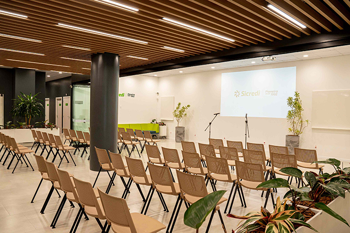 O Espaço Sicredi Fazenda Souza foi concebido como um ambiente multifuncional. Além do atendimento financeiro, a estrutura conta com auditório para 40 pessoas, podendo ser ampliado para até 75 convidados, salas de reunião para pequenos grupos e um espaço de trabalho compartilhado equipado com internet e tomadas.