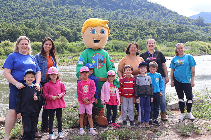 Os alunos da Escola Municipal de Educação Infantil Construindo o Saber, juntos do Grün-Mann - Homem Verde, realizaram o plantio de árvores às margens do Rio Caí na manhã desta terça-feira, 16 de dezembro. A secretária Municipal de Agricultura e Meio Ambiente, Denise Maltoni Bino, e a bióloga Evelyn Dinnebier, acompanharam o momento que tem o objetivo de recompor a mata ciliar da região.