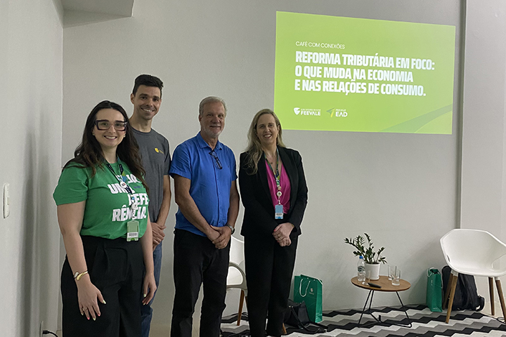 O bate-papo foi conduzido pelo Prof. Dr. José Antônio Ribeiro de Moura, economista e docente da Universidade Feevale, e contou com as contribuições da Profª Drª Marina Furlan, advogada, sócia no escritório Buffon e Furlan Advogados Associados e docente da instituição, e de Jonathan Matheus Grahl, técnico contábil e sócio da Esquema Contabilidade Planejada. Juntos, os convidados trouxeram diferentes perspectivas sobre os efeitos da Reforma Tributária para empresas, consumidores e para a dinâmica econômica regional, e os presentes também puderam contribuir com perguntas e considerações.