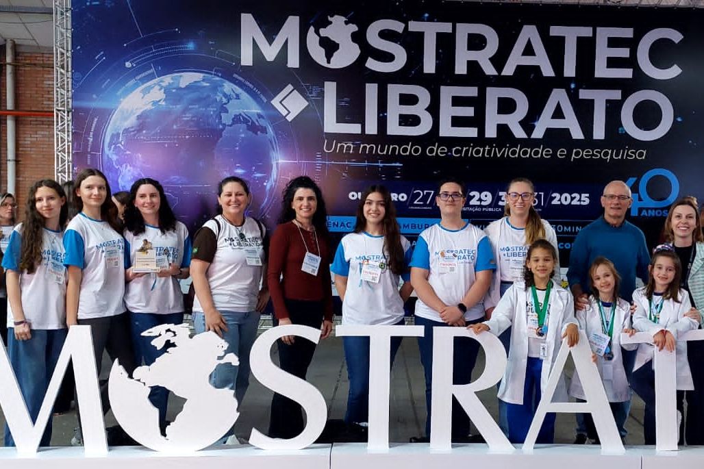 Estudantes de Nova Petrópolis representaram o Município na Mostra Internacional de Ciência e Tecnologia (Mostratec) 2025, realizada na FENAC, em Novo Hamburgo, entre os dias 27 e 31 de outubro. Os 21 alunos de escolas de Educação Infantil, Ensino Fundamental e Ensino Médio apresentaram projetos de pesquisa desenvolvidos ao longo do ano letivo, abordando temas de relevância científica, social e ambiental.