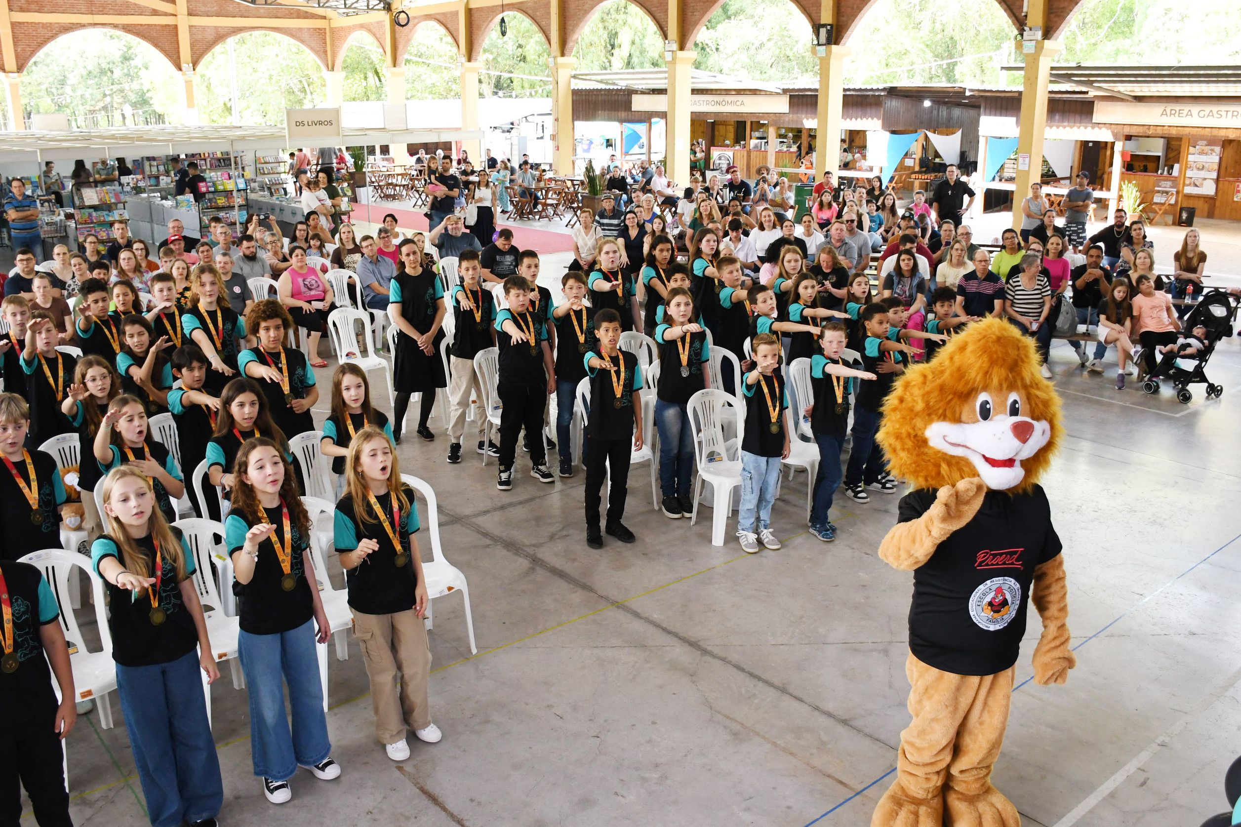A manhã de domingo, 5 de outubro, foi marcada por emoção e aprendizado no Parque Histórico Municipal Jorge Kuhn, em Picada Café, com a formatura dos alunos participantes do Programa Educacional de Resistência às Drogas e à Violência (PROERD). A cerimônia integrou a programação da 25ª Feira do Livro do município e reuniu autoridades, professores, familiares e estudantes dos quintos anos das escolas Estadual Décio Martins Costa, Municipal 25 de Julho e Municipal Santa Joana Francisca.