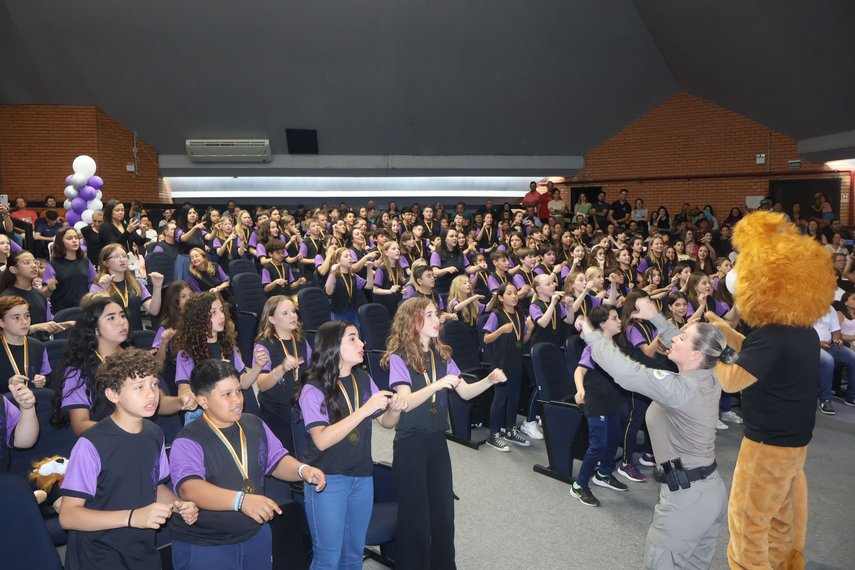 Cerimônia no Centro de Eventos marcou a conclusão do programa para estudantes do 5º ano e premiou as melhores redações sobre prevenção às drogas