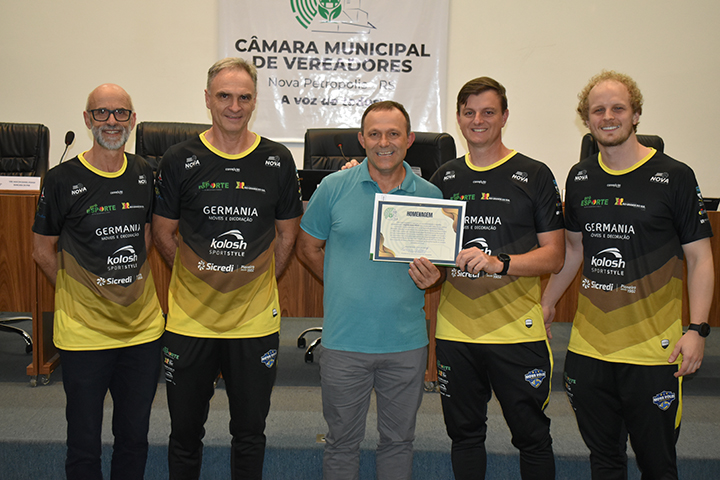 O Presidente Tarcísio Brescovit destacou que a homenagem não era do vereador Bresco, mas de todos os vereadores que compõe a atual legislatura.  “O trabalho que vocês fazem muitas vezes não resulta em vitória ou em pontos, mas reflete a família que vocês têm na Nova Vôlei que projeta Nova Petrópolis para o Estado. Essa família é extensiva, um cuida do outro; e isso se transforma em resultados como esses dois campeonatos conquistados. Essa homenagem reconhece não apenas os títulos e resultados alcançados, mas principalmente o impacto social e formativo da Nova Vôlei que segue inspirando novas gerações por meio deste relevante trabalho no esporte de base. Muito obrigado por nos representarem e trazer esses títulos que foram muito importantes para Nova Petrópolis”, sublinhou Bresco.