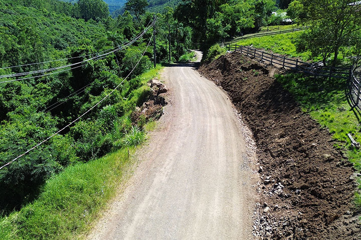 Para restabelecer a segurança, a equipe realizou o alargamento da estrada, recuperando a faixa comprometida e devolvendo ao local a condição adequada de circulação.