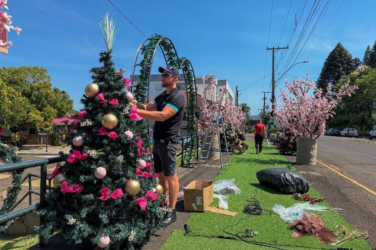 Nos próximos dias, as equipes da Secretaria de Turismo trabalham intensamente em diversos pontos do município, com atenção especial à Praça e à Sociedade Concórdia, para transformar os espaços no cenário encantado que marca o período.