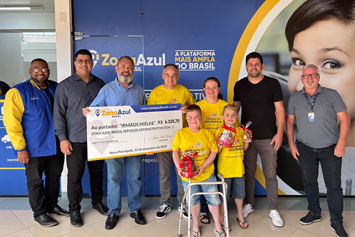 A Zona Azul de Nova Petrópolis repassou R$ 6.320,70 para a campanha dos Irmãos Mielke, de Picada Café, diagnosticados com Distrofia Muscular de Duchenne (DMD), uma doença genética rara e progressiva. O valor é fruto da receita total da arrecadação do dia 22 de novembro, data em que foi realizado no ginásio da IECLB, no Centro,  uma ação de jogos beneficente em prol da causa.