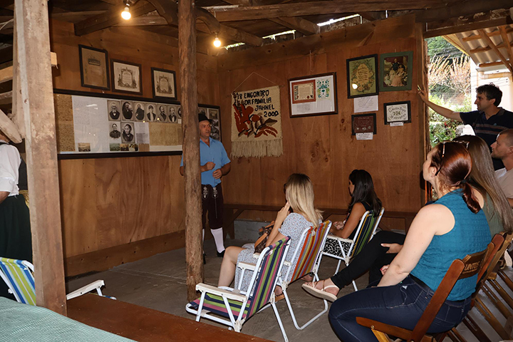 O itinerário teve início no Museu da Família Alberto Hillebrand, na Linha Imperial. Recebido por Adélia Hillebrand, o grupo conheceu o acervo que preserva a memória da família através de objetos de uso pessoal e baús de madeira originais, utilizados pelos imigrantes durante a travessia do Oceano Atlântico.