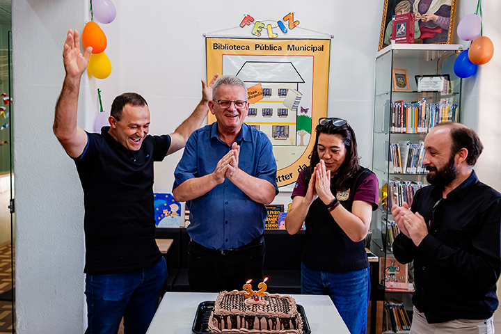As celebrações tiveram início na tarde de sexta-feira, 27 de fevereiro, com a comemoração do aniversário da Biblioteca Pública Municipal Professora Elsa Hofstätter da Silva. O ato solene, realizado na sede da instituição, contou com a presença do prefeito Daniel Carlos Michaelsen, do secretário de Turismo e Cultura, Rodrigo Sangali; da diretora do Departamento de Cultura, Iasmin Schmitt; e da bibliotecária Susana Carrasco. O evento reuniu leitores e escritores locais, reforçando o compromisso da Administração Municipal com o incentivo à leitura e à preservação do patrimônio intelectual de Nova Petrópolis.