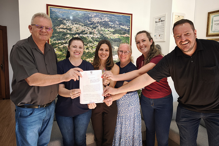 A secretária adjunta de Turismo e Cultura de Nova Petrópolis, Mayara Senna dos Reis; a diretora de Eventos Culturais de Nova Petrópolis, Eduarda Munize Papke; e a representante da Associação dos Amigos da Cultura de Nova Petrópolis, Cristina Arend, também participaram do ato de assinatura do documento.